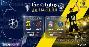 تترقب الجماهير الرياضية في المملكة العربية السعودية وحول العالم انطلاق صافرة البداية لمجموعة من اللقاءات الحاسمة في مختلف البطولات القارية والمحلية المقرر إقامتها غدًا الثلاثاء 14 أبريل 2026 (الموافق 26 شوال 1447 هـ)، وتتصدر مواجهة نادي الاتحاد السعودي والوحدة الإماراتي المشهد الآسيوي، بينما تشتعل المنافسة الأوروبية بلقاءات “تكسير العظام” في دوري الأبطال.