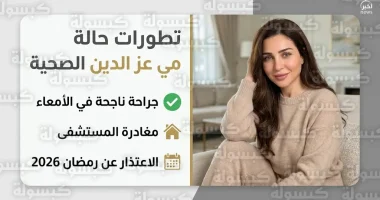 أعلنت النجمة المصرية مي عز الدين، اليوم الثلاثاء 10 مارس 2026، عن استقرار وضعها الصحي ومغادرتها المستشفى رسمياً، وذلك عقب تجاوزها وعكة صحية طارئة استلزمت تدخلاً جراحياً عاجلاً في منطقة الأمعاء، وأوضحت الفنانة أن حالتها في تحسن مستمر بفضل الرعاية الطبية الفائقة التي تلقتها، مؤكدة أنها تتبع حالياً بروتوكولاً دقيقاً للتعافي المنزلي تحت إشراف المتخصصين، مما بدد حالة القلق التي سيطرت على جمهورها في المملكة العربية السعودية والوطن العربي فور انتشار أنباء دخولها غرفة العمليات.