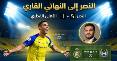 حجز الفريق الأول لكرة القدم بنادي النصر السعودي مقعده في المباراة النهائية لبطولة دوري أبطال آسيا 2 لعام 2026، بعد عرض كروي مبهر انتهى بفوز عريض على شقيقه الأهلي القطري بنتيجة خماسية مقابل هدف وحيد، في اللقاء الذي جمعهما مساء أمس الأربعاء 22 أبريل 2026 ضمن منافسات الدور نصف النهائي، ليبرهن “العالمي” على جاهزيته الفنية العالية لاستعادة الأمجاد القارية.