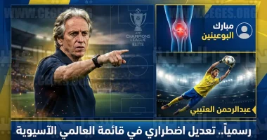 أعلن الجهاز الفني لنادي النصر بقيادة البرتغالي جورجي جيسوس، اليوم الاثنين 13 أبريل 2026، عن إجراء تعديلات رسمية واضطرارية على قائمة الفريق المشاركة في البطولة الآسيوية (دوري أبطال آسيا للنخبة)، وذلك قبل المواجهة المرتقبة أمام الوصل الإماراتي، وتأتي هذه الخطوة في إطار سعي الإدارة الفنية لتأمين مراكز الفريق الحساسة بعد سلسلة من الإصابات التي ضربت صفوف “العالمي” مؤخراً.