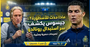 أثار خروج قائد نادي النصر، كريستيانو رونالدو، من أرضية الملعب في المواجهة التي جمعت “العالمي” بنظيره الاتفاق مساء أمس الأربعاء 15 أبريل 2026، تساؤلات واسعة بين الجماهير، قبل أن يخرج المدرب البرتغالي جورجي جيسوس في المؤتمر الصحفي ليوضح الحقائق الطبية وراء هذا القرار الاحترازي.