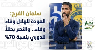 ما هي نسبة فوز النصر بالدوري حسب رأي الفرج؟منح الفرج نادي النصر نسبة 70% للتتويج بلقب دوري روشن لموسم 2025-2026 بناءً على تصدره الحالي لجدول الترتيب.