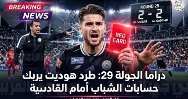 شهدت مواجهة نادي الشباب ونظيره القادسية، التي أقيمت اليوم الثلاثاء 14 أبريل 2026، أحداثاً دراماتيكية ضمن منافسات الجولة التاسعة والعشرين من دوري روشن السعودي للمحترفين (موسم 2025-2026)، وتصدر مدافع “الليوث”، المحترف الهولندي ويسلي هوديت، المشهد بعد تلقيه بطاقة حمراء مباشرة أثارت جدلاً واسعاً في الأوساط الرياضية.
