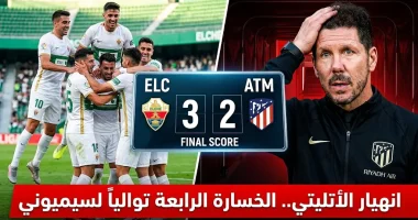 نجح فريق إلتشي في إنعاش آماله بالبقاء في “الليجا” بعد تحقيقه انتصاراً مثيراً على ضيفه أتلتيكو مدريد بنتيجة 3-2، في اللقاء الذي أقيم مساء أمس الأربعاء واكتملت أصداؤه اليوم الخميس 23 أبريل 2026، وبهذه النتيجة، واصل فريق العاصمة الإسبانية سلسلة نتائجه الكارثية، متلقياً الخسارة الرابعة على التوالي في مختلف المسابقات، مما يضع مستقبل المدرب دييجو سيميوني على المحك.