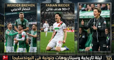 شهدت منافسات الجولة الثلاثين من الدوري الألماني “البوندسليجا” لعام 2026 – 1447 هـ، اليوم السبت 18 أبريل، سلسلة من النتائج المثيرة التي قلبت موازين صراع المربع الذهبي وأشعلت صراع البقاء، في يوم تاريخي شهد حدثاً غير مسبوق في تاريخ الدوريات الكبرى.