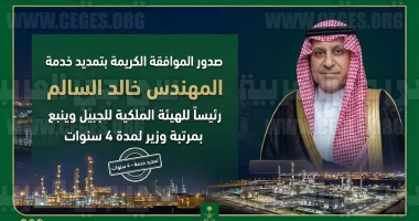 صدرت الموافقة الكريمة اليوم الاثنين 13 أبريل 2026 (الموافق 26 شوال 1447 هـ) بتمديد خدمة معالي المهندس خالد بن محمد السالم رئيساً لـ الهيئة الملكية للجبيل وينبع بمرتبة وزير لمدة أربع سنوات إضافية، ويأتي هذا القرار الملكي في إطار دعم استمرارية القيادة الإدارية والفنية لواحدة من أهم القلاع الصناعية في المملكة، وضمان مواصلة النجاحات التي تحققت في المدن التابعة للهيئة.