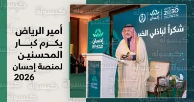 نيابة عن ولي العهد أمير الرياض يكرم كبار المتبرعين لمنصة إحسان لعام 2026