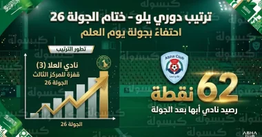 اختتمت اليوم الثلاثاء 10 مارس 2026، منافسات الجولة 26 من دوري يلو لأندية الدرجة الأولى، والتي حملت شعار “جولة يوم العلم” احتفاءً بالمناسبة الوطنية الغالية للمملكة، ومع اقتراب المسابقة من أمتارها الأخيرة، شهد سلم الترتيب تحولات جوهرية تعكس رغبة الأندية في حسم بطاقات التأهل إلى دوري روشن للمحترفين لعام 2027.