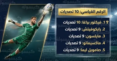 دون فيكتور براغا اسمه كأبرز رقم في إحصائيات الموسم الحالي 2026 حتى الآن، بعدما نجح في منع 10 أهداف محققة خلال مواجهة فريقه أمام نادي الأخدود، هذا الأداء الاستثنائي لم يكن مجرد تصديات عادية، بل كان صمام أمان حافظ على توازن فريقه طوال دقائق المباراة، مما أكد براعته في التعامل مع الكرات الصعبة تحت الضغط الهجومي العالي، ليكون الحارس الأكثر تألقاً من حيث الأرقام الفردية في مباراة واحدة.