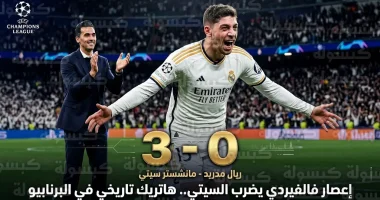 سطر النجم الأوروغوياني فيديريكو فالفيردي فصلاً جديداً في تاريخ نادي ريال مدريد الإسباني، بعدما قاد “الملكي” لاكتساح ضيفه مانشستر سيتي الإنجليزي بثلاثية نظيفة (هاتريك)، في المباراة التي أقيمت على ملعب “سانتياغو برنابيو” ضمن ذهاب دور الـ16 لبطولة دوري أبطال أوروبا لموسم 2025-2026.