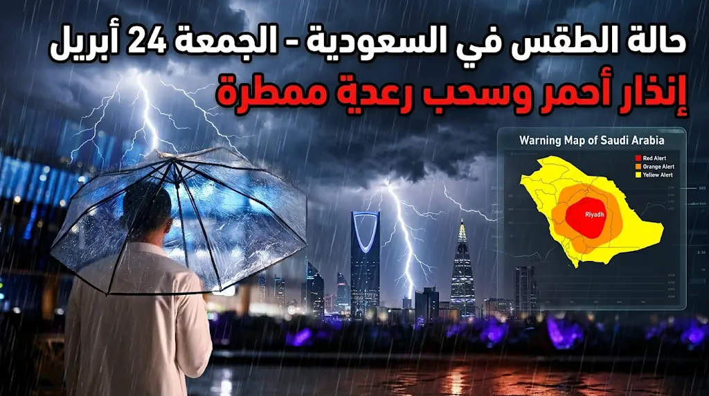 حالة الطقس في السعودية اليوم الجمعة 24 أبريل 2026: أمطار رعدية غزيرة على الرياض و10 مناطق (تحديث عاجل)