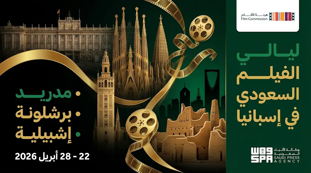 تبدأ هيئة الأفلام السعودية غداً الأربعاء، الموافق 22 أبريل 2026، جولة سينمائية دولية في مملكة إسبانيا تحت عنوان “ليالي الفيلم السعودي”، وتأتي هذه المبادرة في إطار جهود الهيئة لتعزيز حضور السينما السعودية في المحافل العالمية، وفتح آفاق التعاون الثقافي والفني بين صناع الأفلام في المملكة ونظرائهم في أوروبا.