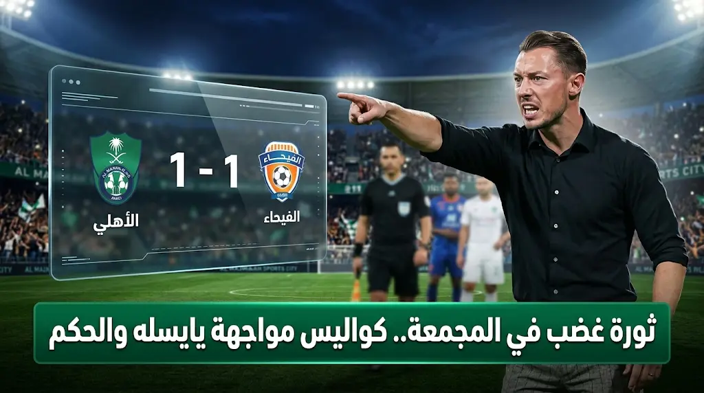 شهدت مواجهة النادي الأهلي ونظيره الفيحاء، التي أقيمت مساء أمس وانتهت بالتعادل الإيجابي (1-1)، أحداثاً دراماتيكية عقب صافرة النهاية، وتأتي هذه المباراة ضمن منافسات الجولة 28 من دوري روشن السعودي للمحترفين لموسم 2025-2026 (1447 هـ)، حيث خيم التوتر على الأجواء نتيجة اعتراضات فنية وإدارية واسعة من الجانب الأهلاوي على القرارات التحكيمية.