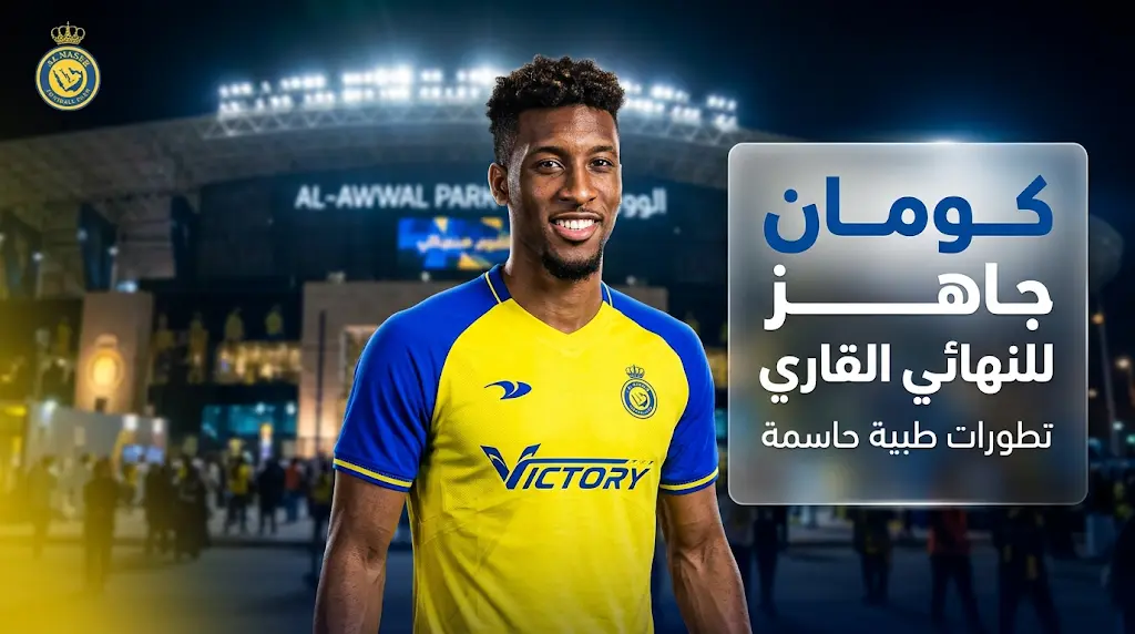سادت حالة من التفاؤل الكبير داخل أروقة نادي النصر السعودي اليوم، الخميس 23 أبريل 2026، بعد صدور التقرير المبدئي للجهاز الطبي حول جاهزية النجم الفرنسي كينجسلي كومان للمشاركة في الاستحقاقات المقبلة، وعلى رأسها المشهد الختامي للبطولة الآسيوية.
