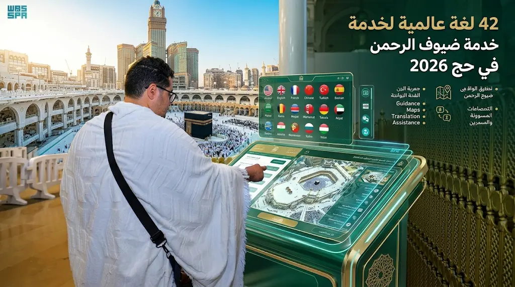 1. دعم لغوي واسع: توفير المحتوى بـ 42 لغة عالمية لكسر حواجز التواصل مع الزوار من كافة أنحاء العالم وضمان وصول الرسالة الدينية بلغة الحاج الأم.