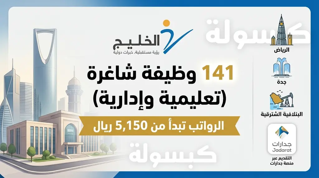 في تحديث جديد لفرص العمل في قطاع التعليم والتدريب بالمملكة العربية السعودية، أعلنت شركة الخليج للتدريب والتعليم عن طرح 141 وظيفة شاغرة (تعليمية وإدارية) للرجال والنساء، للعمل في عدة مدن رئيسية، برواتب تنافسية تبدأ من 5,150 ريال سعودي.