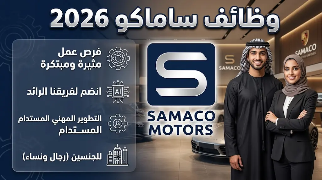 أعلنت شركة ساماكو للسيارات، الوكيل الرسمي لنخبة من العلامات التجارية العالمية في المملكة، اليوم الجمعة 24 أبريل 2026 (الموافق 7 ذو القعدة 1447هـ)، عن توفر سلسلة من الوظائف الشاغرة للسعوديين والسعوديات، تهدف هذه الفرص إلى تعزيز الكوادر الوطنية في قطاعات الإدارة، التقنية، والهندسة، مع توفير بيئة عمل محفزة لحديثي التخرج وأصحاب الخبرات في مراكزها الرئيسية.